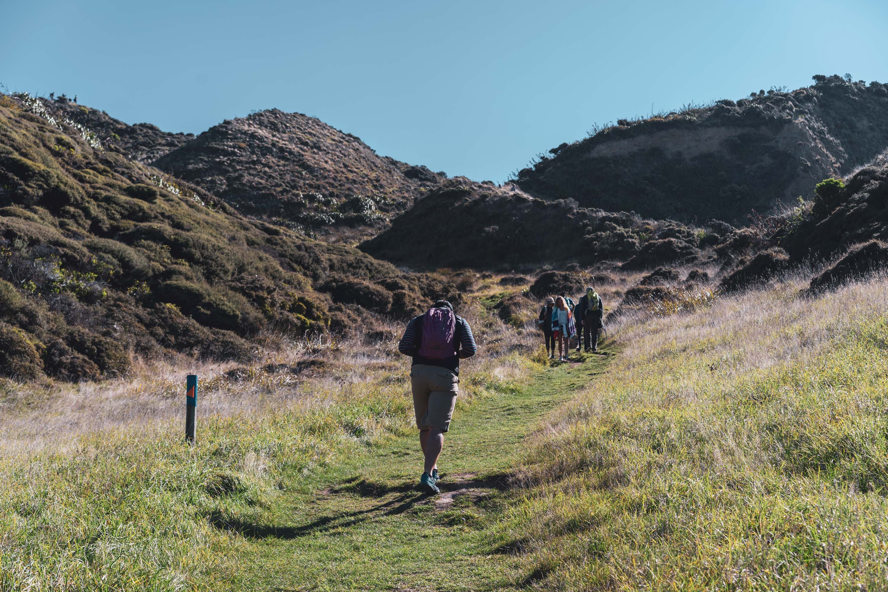 해변을 10분 정도 걸으면 이렇게 언덕으로 올라가는 길이 있습니다. 원래 사람이 별로 없는데, 부활절 휴일이라 그런지 가족 단위가 많았습니다. 참고로 뉴질랜드는 부활절이 휴일인데요. 부활절 휴일은 상점이나 수퍼 등 문을 많이 닫는 편이라 할 일이 그닥 없습니다. 그래서 다들 할 일 없으니 하이킹 하러.. (물론 저희도 할 일이 없어서 온 거..)