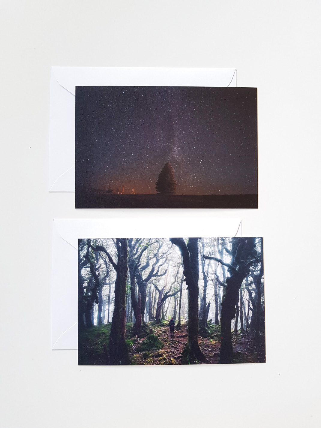 직접 찍은 뉴질랜드의 은하수와 숲속 사진으로 만든 엽서입니다.