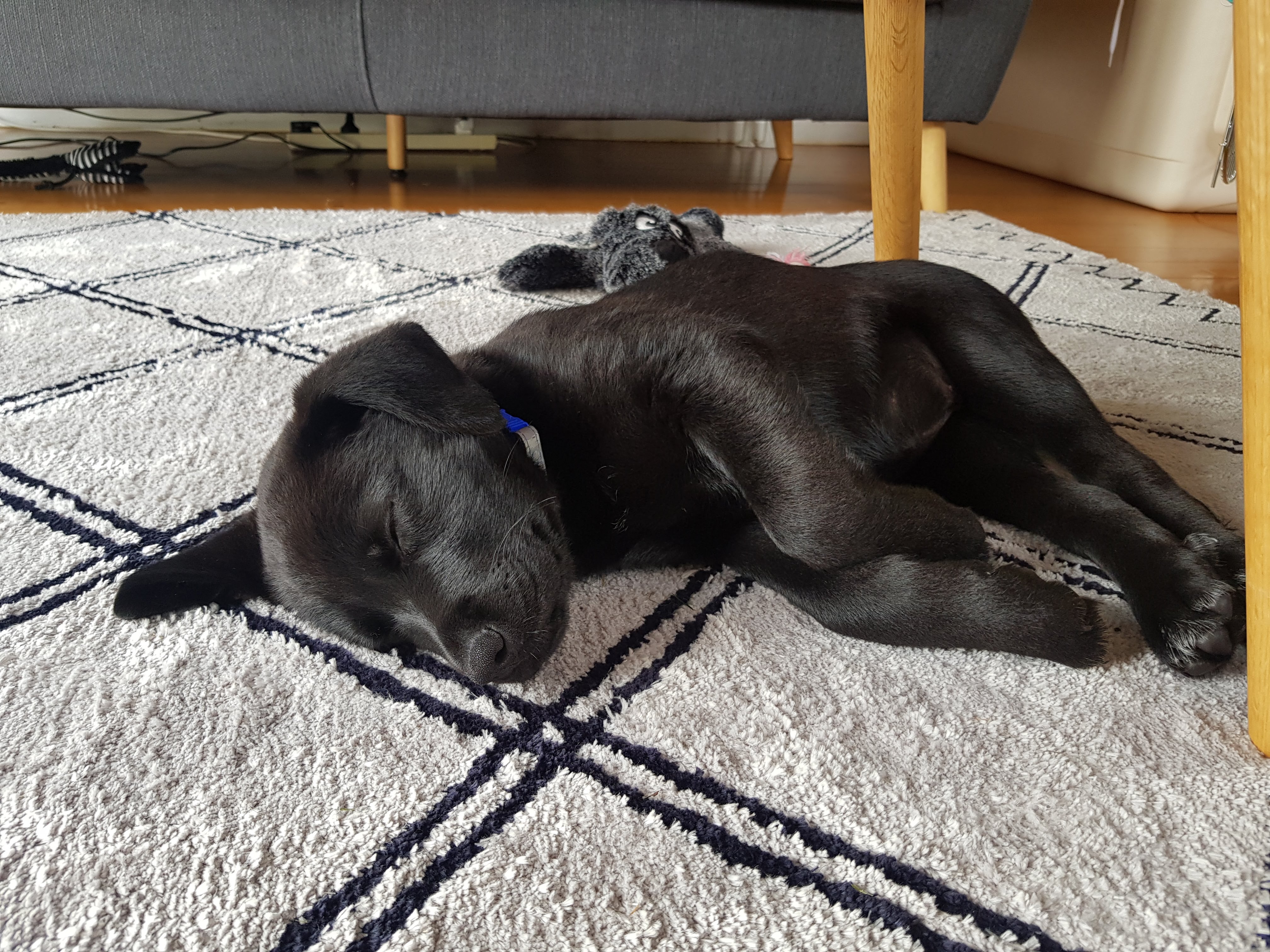 - 크레이트(Crate)에서 잠을 재웠으나 옆에 소파베드를 두고 첫 날은 같이 거실에서 잠. 조금 낑낑 대다가 피곤했는지 바로 숙면하심.