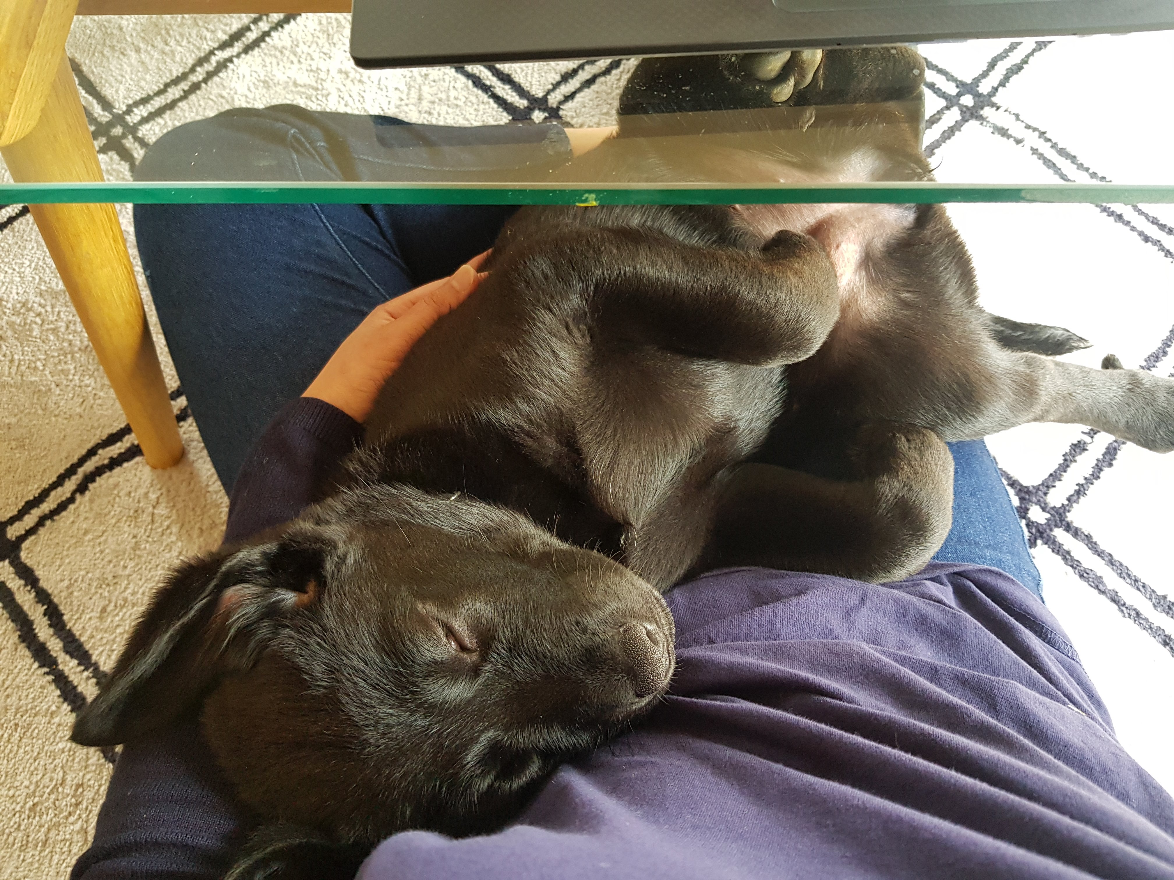 - 8주부터 15주까지는 사회화를 기르는 시기라고 해서 친구와 그의 아들을 초대했는데, 소파뒤에 들어가서는 나오질 않는다 ㄷㄷ 부끄러워서 그런거야~ 라고 4살 짜리 친구 아들을 달랬지만 내심 섭섭했었을지도. 성격이 부끄럽거나 사람이나 동물을 모두 무서워 하는 것 같다.