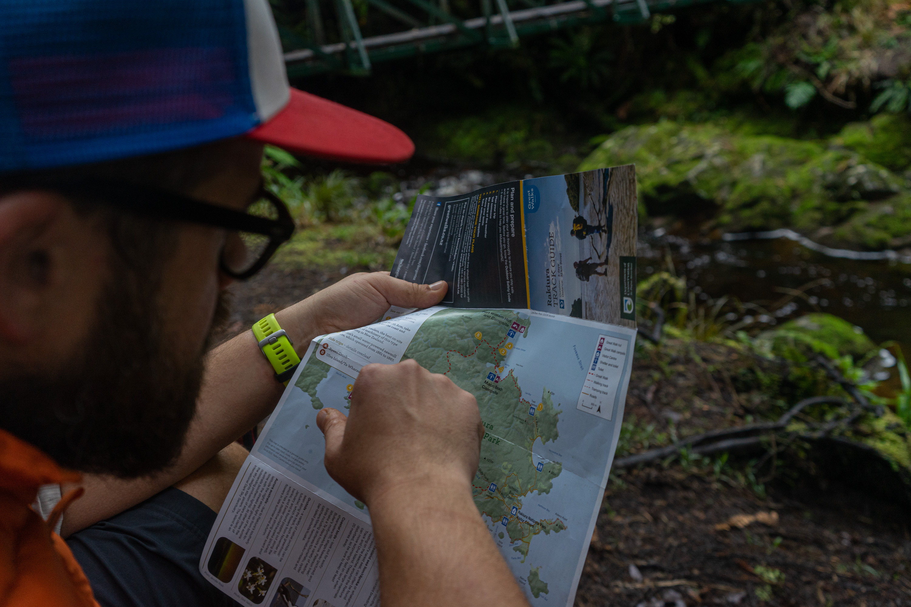 우리가 어디쯤 왔는지 쉬는 동안에 지도를 봅니다. 생각보다 빨리 걸어서 이날 도착지인 노스 암 헛(North are hut)에 도착해서 조금 늦은 점심쯤을 먹기로 결정합니다.