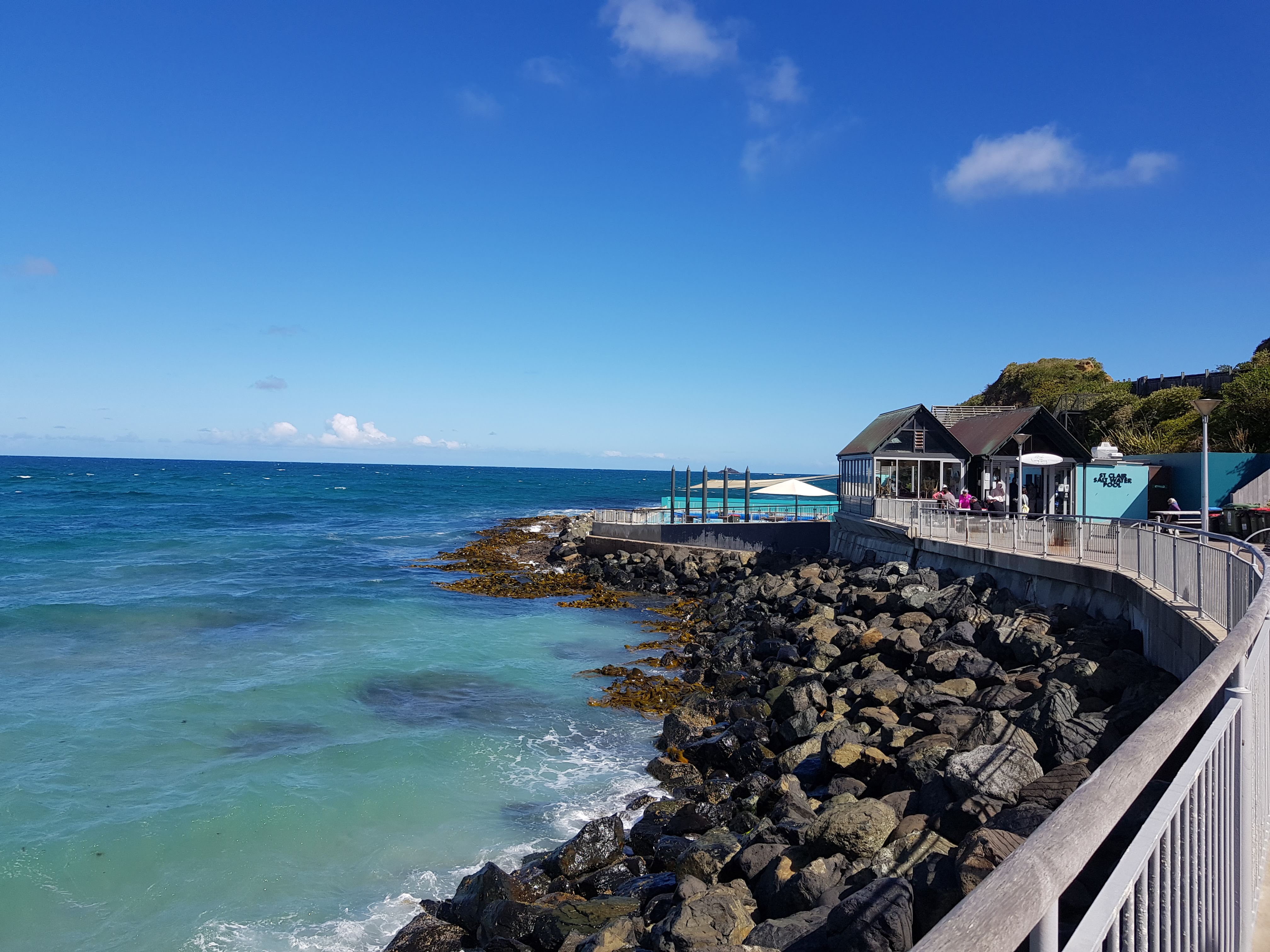 세인트 클레어 비치에 날씨 좋을 때에 방문해서 그런지 마치 영화에 나오는 작은 마을의 바닷가 같았습니다. 바닷가를 그림 삼아 근처에 이탈리안 레스토랑 및 몇 가지 옵션이 있으니 그곳에서 점심을 해결하거나 음식을 싸가지고 이 곳에서 드시면 좋을 것 같습니다.