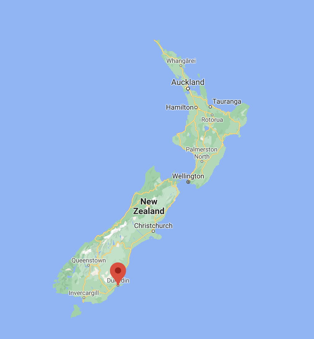 더니든(Dunedin) 도시는 뉴질랜드 남섬에 위치하고 있으며, 남섬에서 가장 큰 도시인 크라이스트처치(Christchurch)에서 차로 4시간 30분에서 5시간 정도 걸리는 곳에 있습니다.
