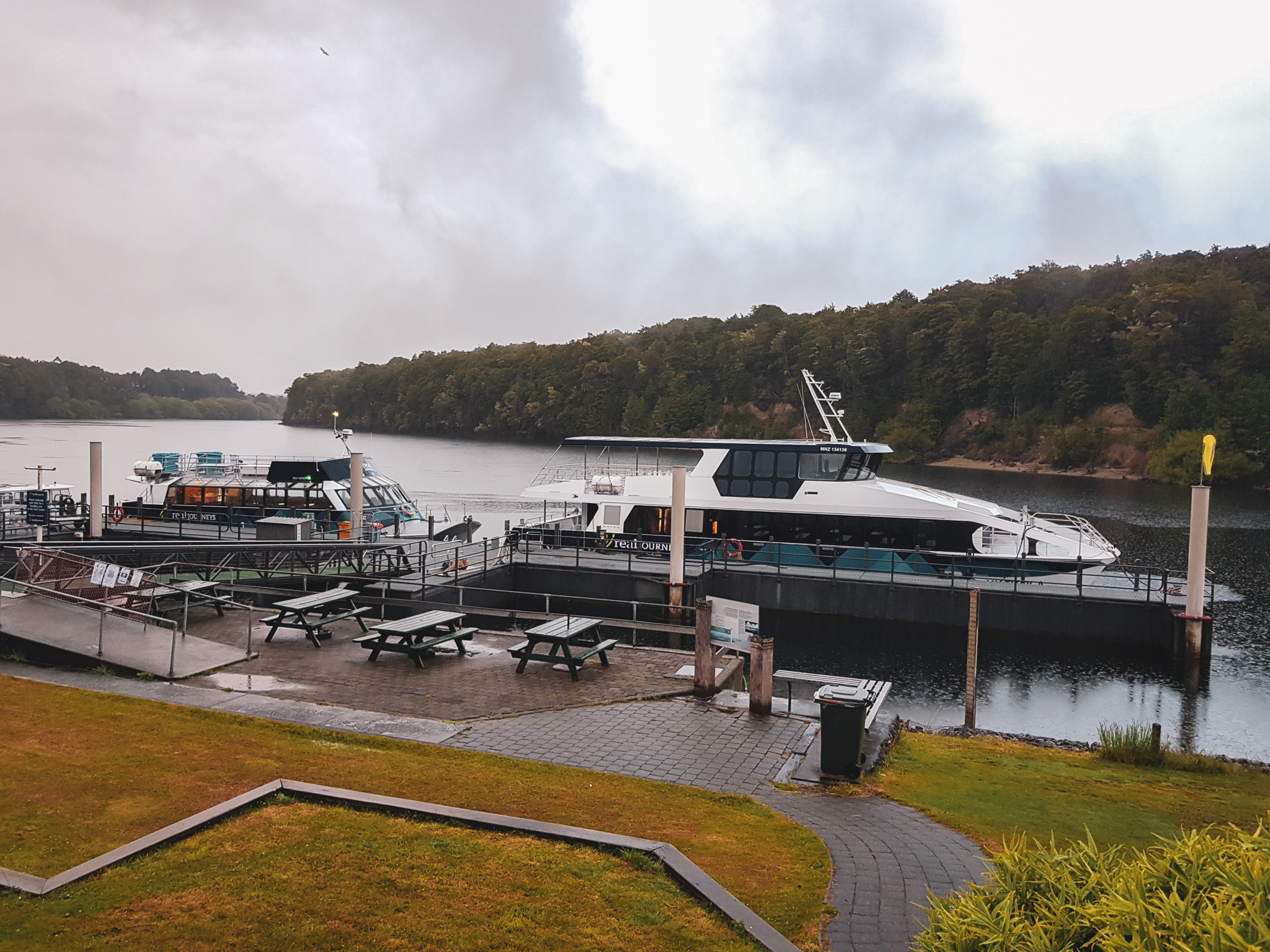 처는 아침 일찍 7시에 출발하는 첫 배를 타기 위해 그 전날 밤 마나포우리(Manapouri)에서 숙박을 했습니다. 배 시간 30분 전에 선착장에 도착하였습니다.