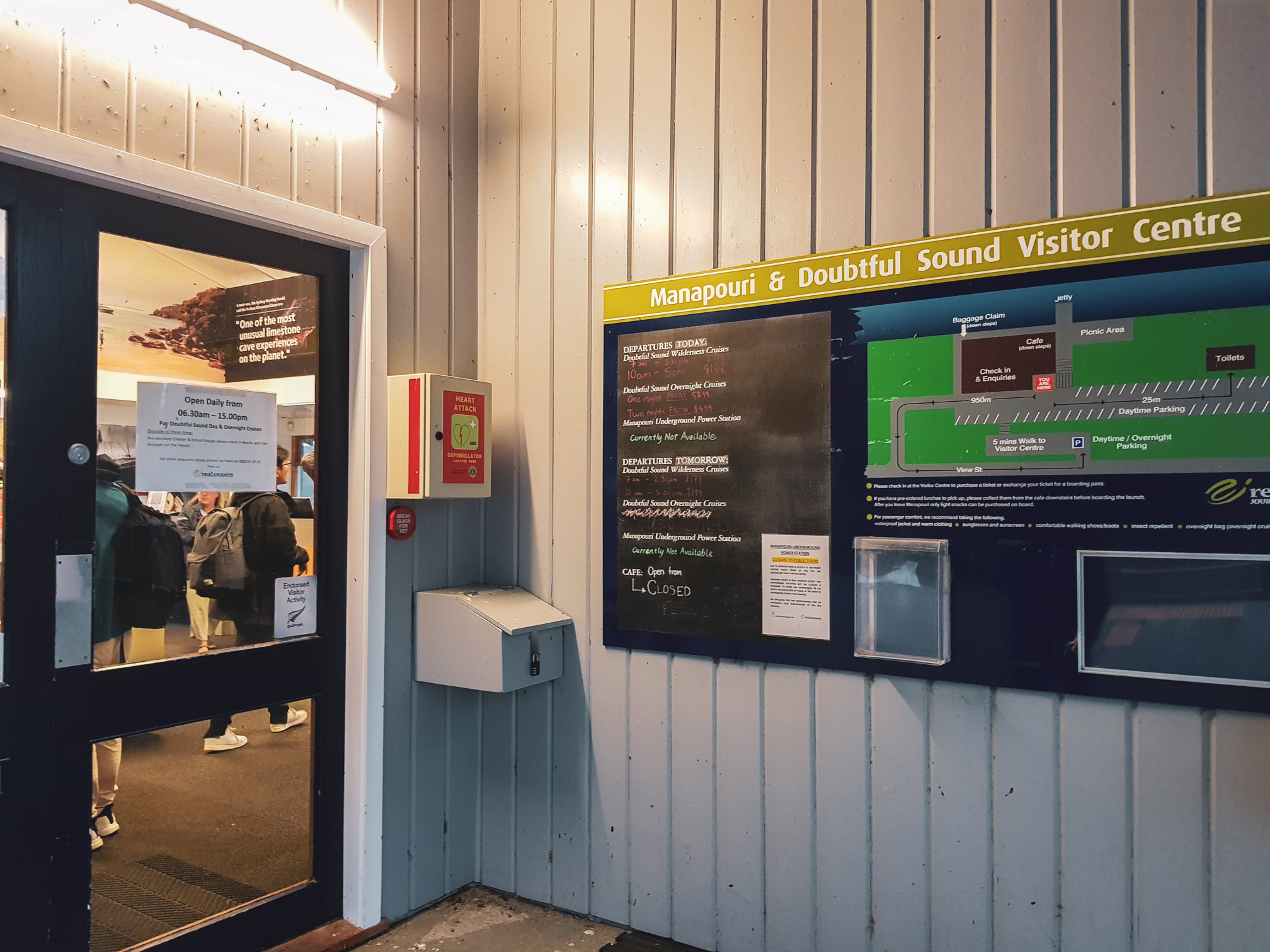 처는 아침 일찍 7시에 출발하는 첫 배를 타기 위해 그 전날 밤 마나포우리(Manapouri)에서 숙박을 했습니다. 배 시간 30분 전에 선착장에 도착하였습니다.