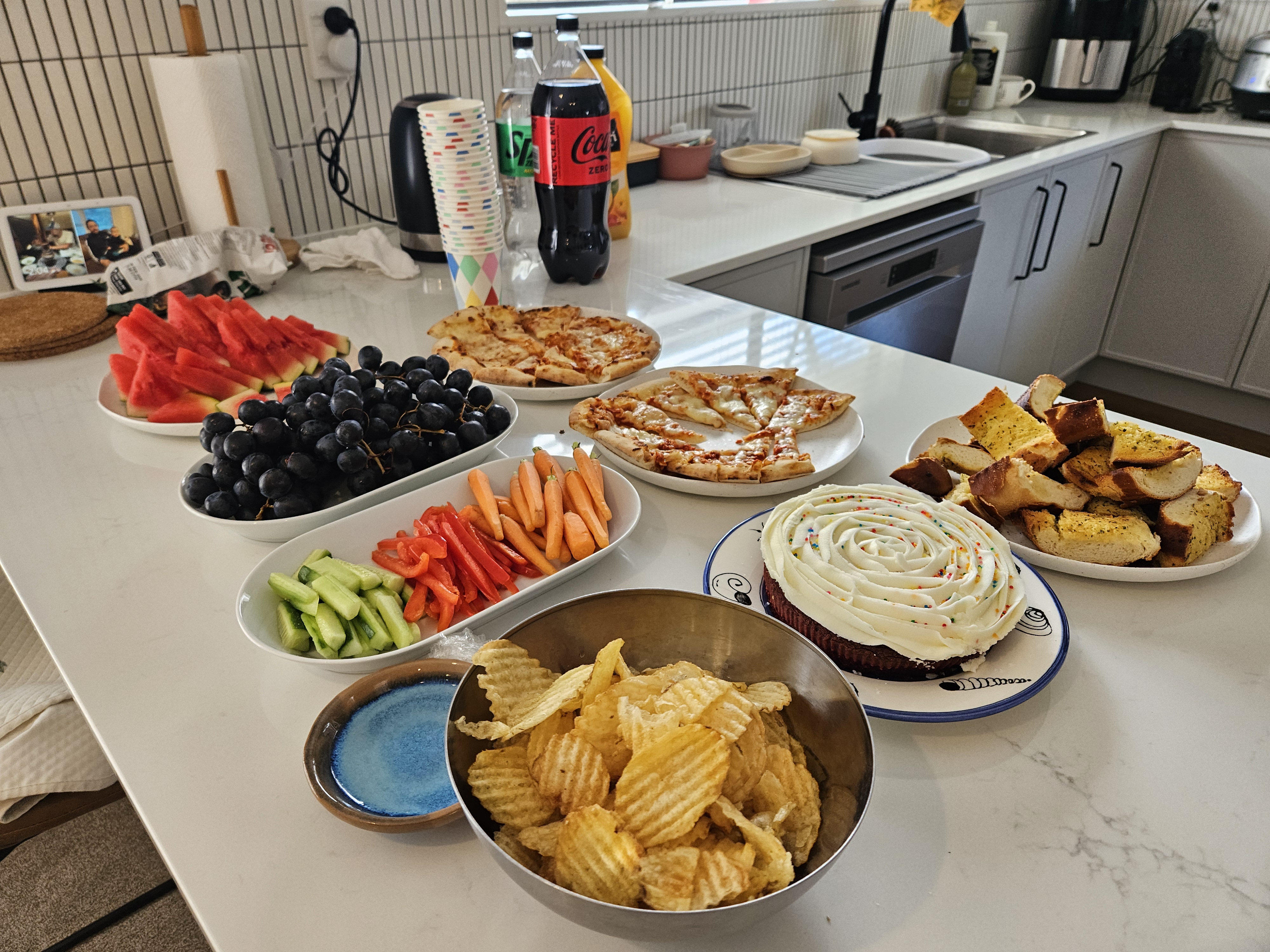 아기 한복이나 돌에 필요한 용품들은 어차피 한번 쓰니 빌리기로 하고 (빌린 곳 링크), 케잌이랑 컵케잌을 주문제작하고 헬륨이 들어간 풍선도 20개 주문했다. 초대한 사람들에게는 선물 필요 없고 나눠 먹을 음식만 가져오라고 했다. (하지만 몇몇은 가지고 옴) 애들이 많이 오니까 음식도 좀 더 아기/애들 위주로 순한 것들?을 더 준비했다.