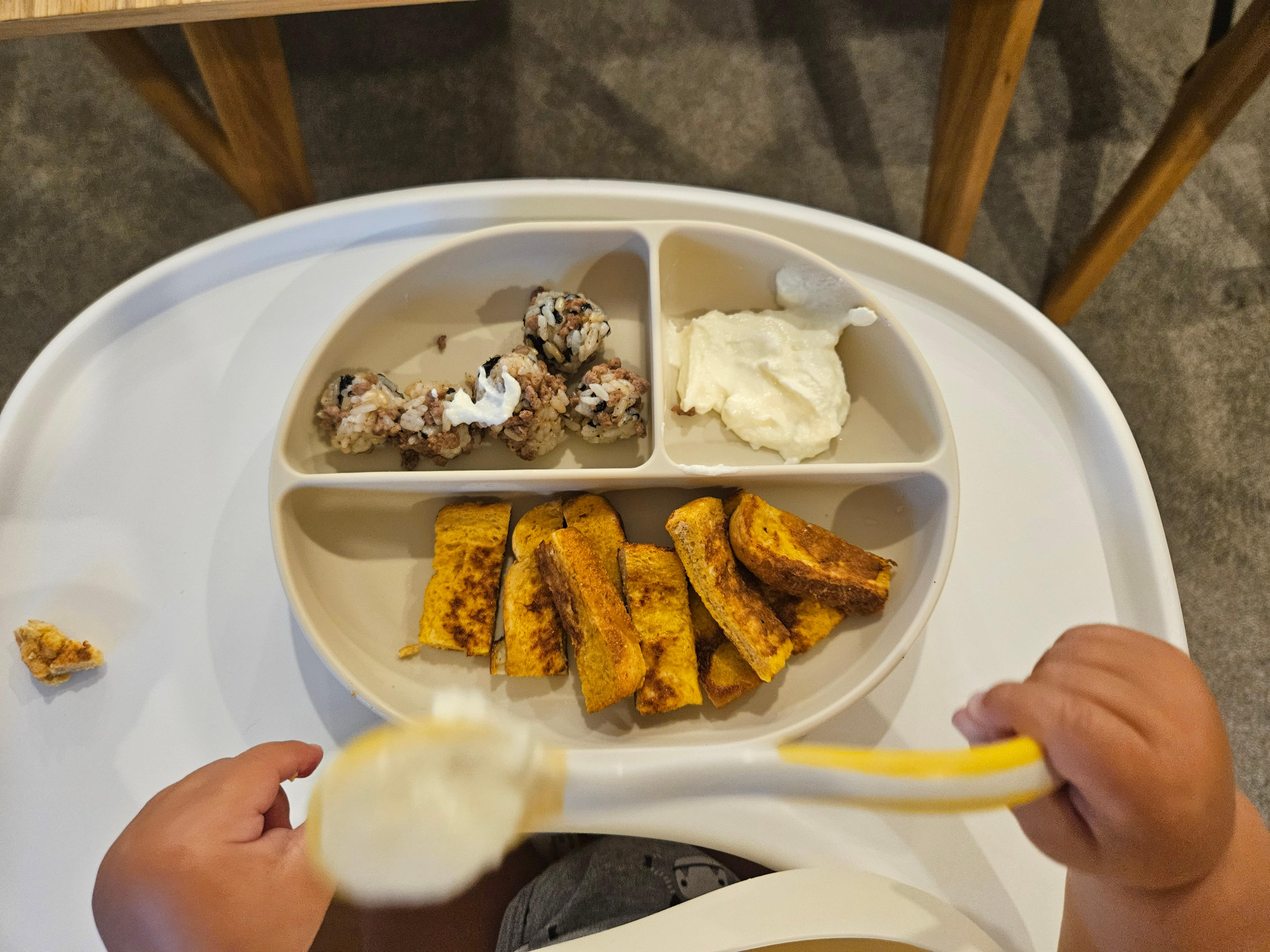 - 숟가락을 쓰는 법을 터득했는지 퍼먹으려고 노력한다. 하지만 잘 안되서 많이 흘리곤 한다.