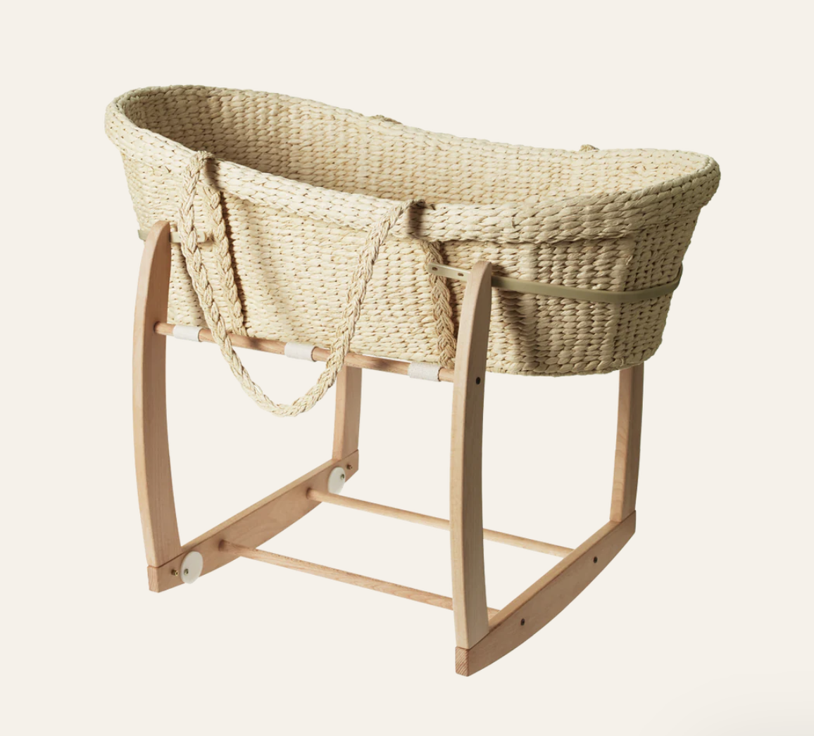 - 바시넷(bassinet): 엄마 침대 옆에서 바로 재울 수 있는 이동 가능한 아기 침대. 여기서는 모세의 바스켓이라고 해서 이렇게 된 바스켓을 쓰는 사람들이 많은데 아기를 들고 장소 이동이 편하게 저렇게 바구니처럼 생긴 걸 쓰다가 아기가 2개월 쯤 되어 좀 더 컸을 때 침대 옆에 두고 쓰는 바시넷으로 바꾸었다. 그리고 6개월 이후 수면분리가 서서히 되면서 제대로 된 아기 침대로 아기방에 갖다 두었다. 처음부터 아기 침대 구매하지 않고 일단 바시넷으로 먼저 시작하고 천천히 봐도 된다.
